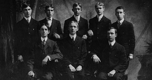 Our founding was certainly not without setbacks. In fact, Pi Kappa Phi was originally founded as Nu Phi, which stood for “non-fraternity.” Our founders, disillusioned with campus politics being run exclusively by fraternities, created Nu Phi as a means to attain leadership roles within the Chrestomathic Literary Society. However, the attempt to seize control of the Society was thwarted when some of the Nu Phis proved to be disloyal. The loyal Nu Phis regrouped, and on the evening of December 10, 1904, the seven remaining men created a new group—to be known as Pi Kappa Phi.